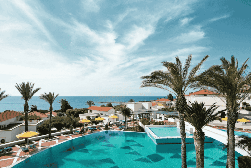 Located on the shores of Rhodes, this all-inclusive beachfront resort blends traditional Greek hospitality with modern comforts. With a wide range of dining options, pools and activities, it’s a reliable choice for both families and couples.