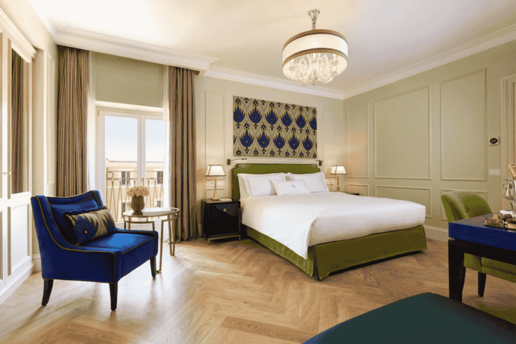 Perched atop the Spanish Steps, Hotel de la Ville is one of Rome’s most enviable addresses. This Rocco Forte property combines bold design with timeless elegance, offering sumptuous rooms and suites with sweeping city views. Guests can dine at refined restaurants, sip cocktails on the rooftop terrace, or relax in the indulgent spa. With its central location, clients can easily explore landmarks such as the Trevi Fountain and Villa Borghese. This hotel is perfect for travellers who want a glamorous Roman experience with top-class service.