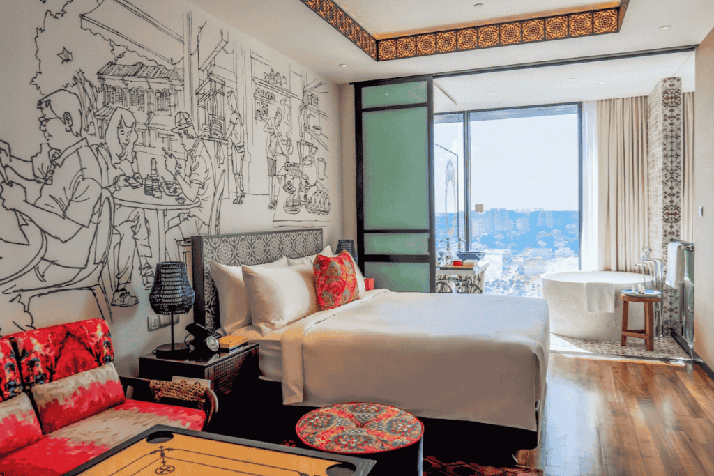 A boutique hotel driven by design that honours Katong’s Peranakan history. Large windows, contemporary amenities, and colourful local artwork adorn the rooms, and the rooftop infinity pool provides expansive views of the city and the ocean. The hotel attracts both returning guests and tourists who are interested in culture because it is conveniently located near central Singapore.