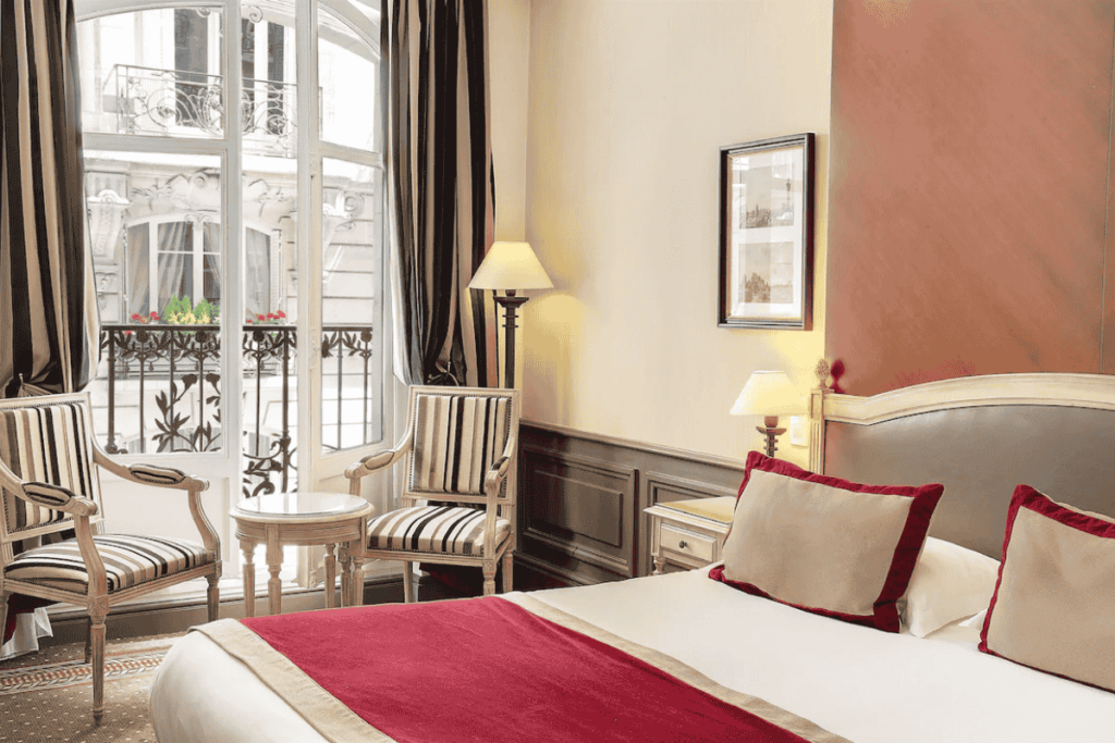 A sleek and modern boutique hotel located just a few minutes from the Eiffel Tower and Palais de Chaillot. The Plaza Tour Eiffel is known for its clean, contemporary rooms and peaceful atmosphere. With a small fitness room and an inviting lounge area, it’s a solid choice for clients looking for comfort and convenience in an upscale setting.