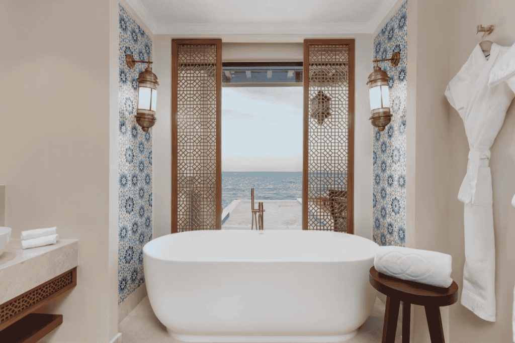 Combining French elegance with Arabian charm, Sofitel Zallaq is renowned for its wellness offerings, including its famous thalassotherapy spa. The hotel overlooks the Arabian Gulf, offering a tranquil environment perfect for couples, wellness travellers, and those wanting resort-style relaxation.
