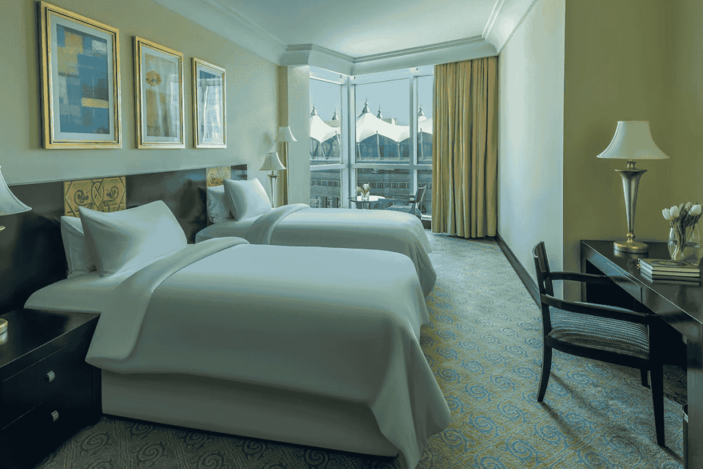 A true landmark overlooking the Holy Kaaba, Raffles Makkah Palace offers refined luxury with spacious suites and personalised service. Its serene ambience and prime location make it ideal for families and premium pilgrims seeking comfort and privacy during the holy month.