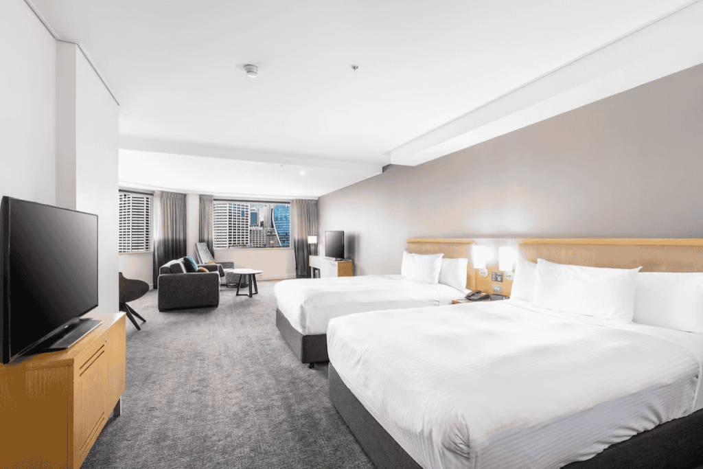 Located in the lively Darling Harbour precinct, this hotel offers a family-friendly atmosphere and excellent views of the waterfront fireworks. Guests can enjoy an outdoor dinner before stepping out to the harbour promenade for the countdown. It’s an ideal choice for those who want to be close to the action but in a relaxed, scenic setting.