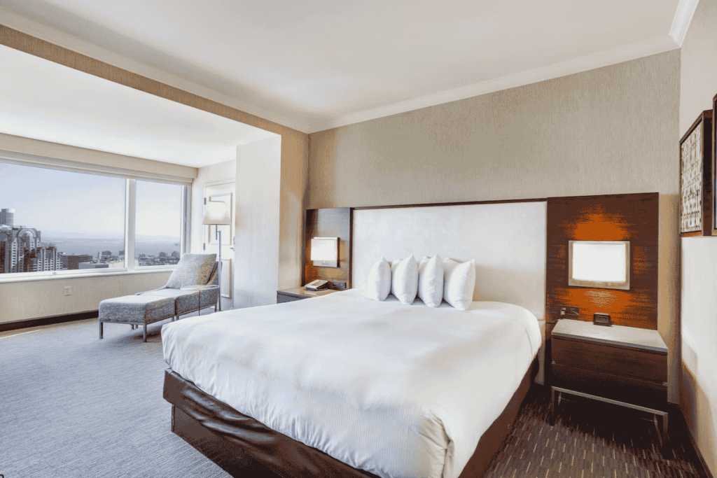 In the heart of SF’s vibrant Union Square, this 4-star tower delivers 1,921 rooms with cable car views and tech-savvy vibes. Foggy mornings call for in-room yoga mats and Herb & Wood dining; evenings hit the Top of the Mark lounge for city lights. Ideal for business travelers or first-time California explorers craving convenience.