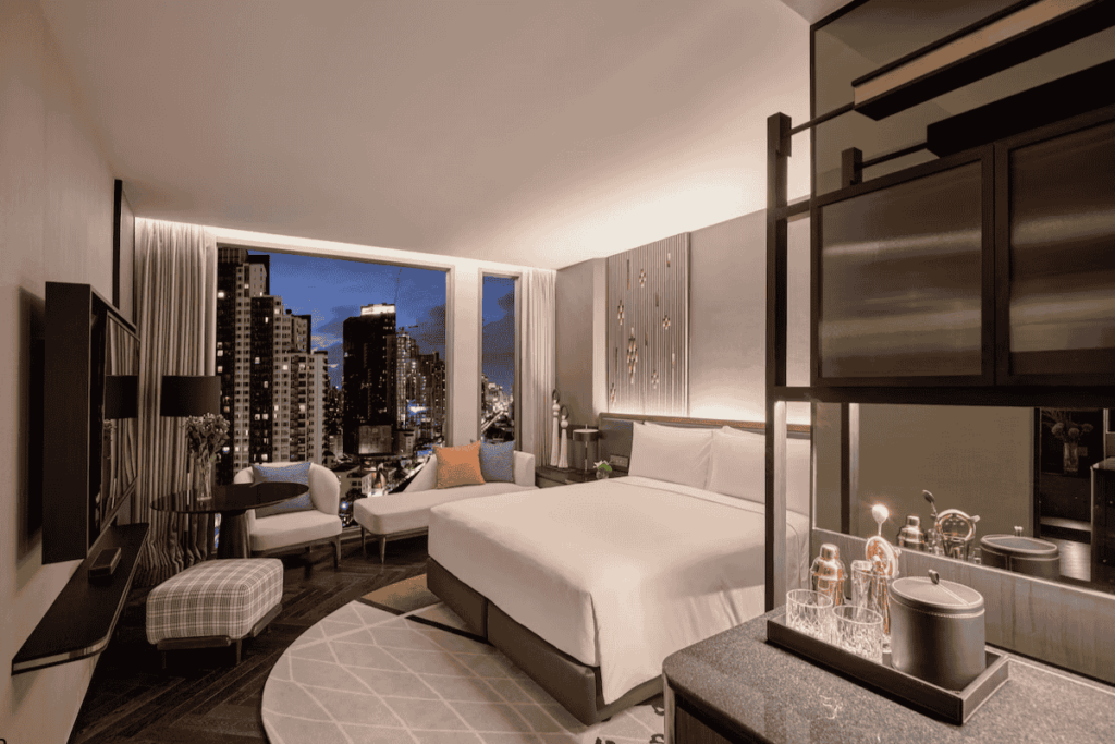Sukhumvit’s sky-high 5-star (397 rooms) rules with Club InterContinental access, infinity pool, and Nikkei dining. BTS-linked for BTS Skytrain ease, it’s Bangkok’s business-leisure hybrid, rooftop yoga to street food shuttles. Urban Thailand at its sleekest.