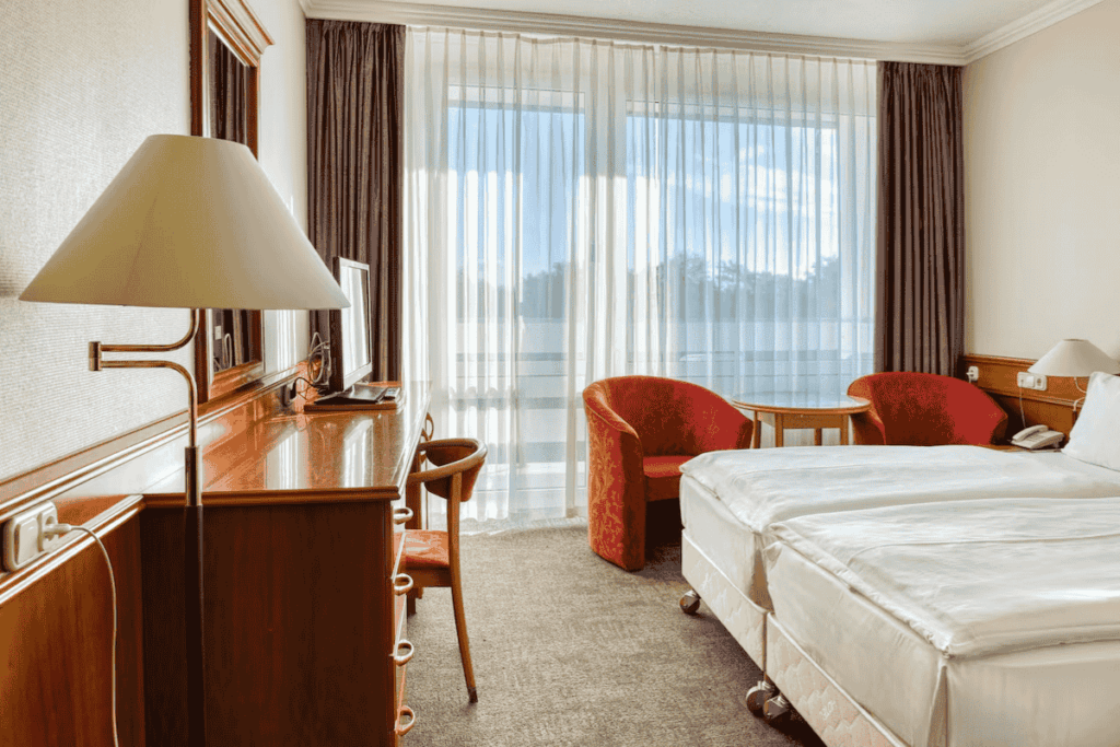 Just steps from Lake Hévíz, this hotel offers both medical and leisure-focused spa services. Thermal pools, hydrotherapy, and mud treatments are complemented by comfortable rooms and dining options, making it a great choice for longer stays.