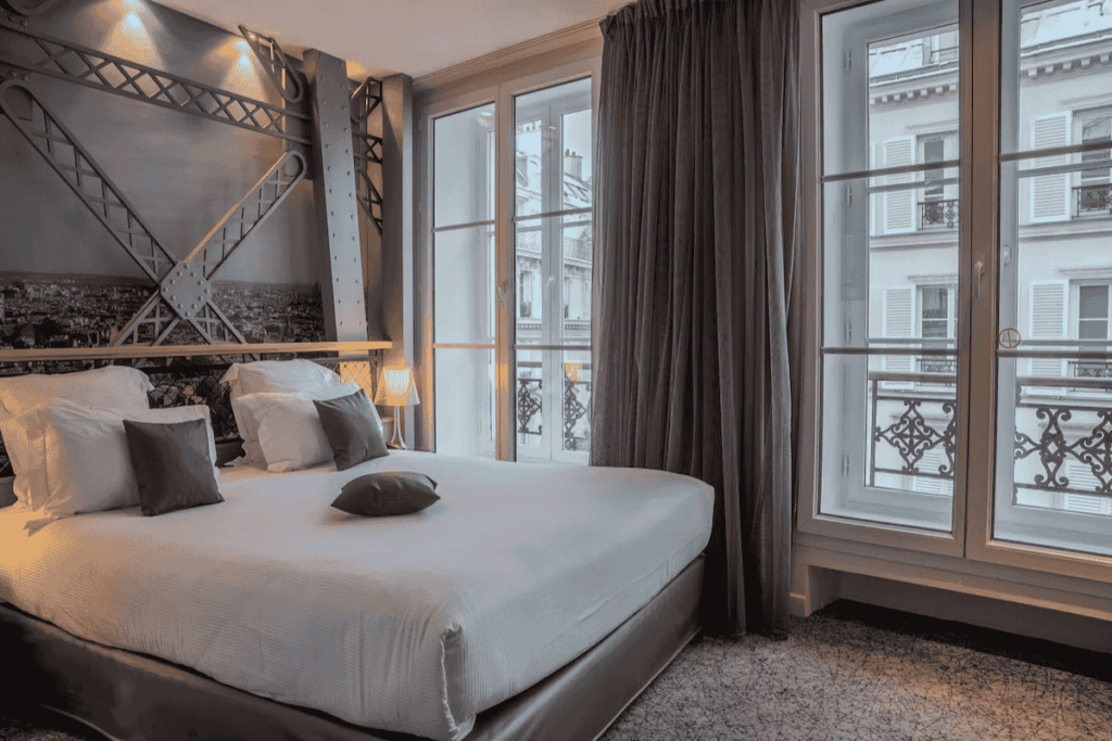 Tucked in the 17th arrondissement near the Eiffel Tower, this 4-star gem channels sultry Parisian romance with just 27 rooms. Think Eiffel Tower views from your bubble bath, a hammam spa for post-sightseeing unwinding, and interiors blending vintage velvet with modern edge. Perfect for couples craving discreet luxury, book the Eiffel Suite for skyline magic at dawn.