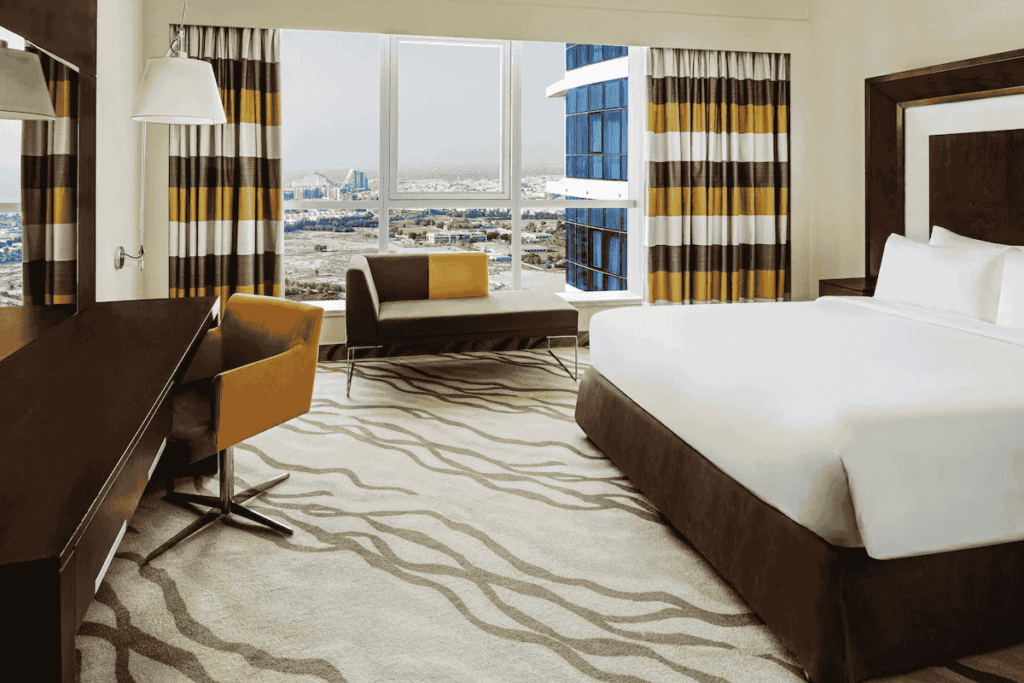 For a fun and budget-friendly option without sacrificing location, Rove City Walk puts guests right next to Dubai’s coolest open-air entertainment district. Expect playful interiors, creative co-working spaces, and a lively atmosphere. It’s just minutes from Coca-Cola Arena and a short drive from the Burj Khalifa – ideal for young travellers or couples exploring the city’s urban edge.