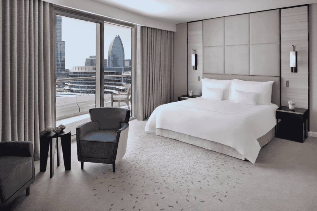 Seamlessly connected to Dubai Mall via an air-conditioned walkway, Sofitel Downtown offers unbeatable access to shopping, dining, and entertainment. The hotel blends French sophistication with Arabian warmth, featuring a rooftop pool with panoramic skyline views, elegant restaurants, and a luxury spa – perfect for clients who love fashion, food, and city buzz.