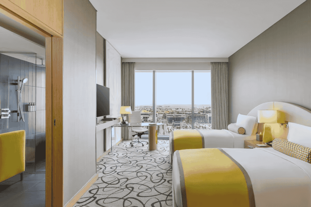 Rising high along Sheikh Zayed Road, opposite the World Trade Centre, Conrad Dubai impresses with contemporary design, lush urban gardens, and a stunning outdoor pool area. The hotel’s location makes it a favourite for both business and leisure travellers, offering easy access to Dubai Frame, Museum of the Future, and Downtown Dubai.