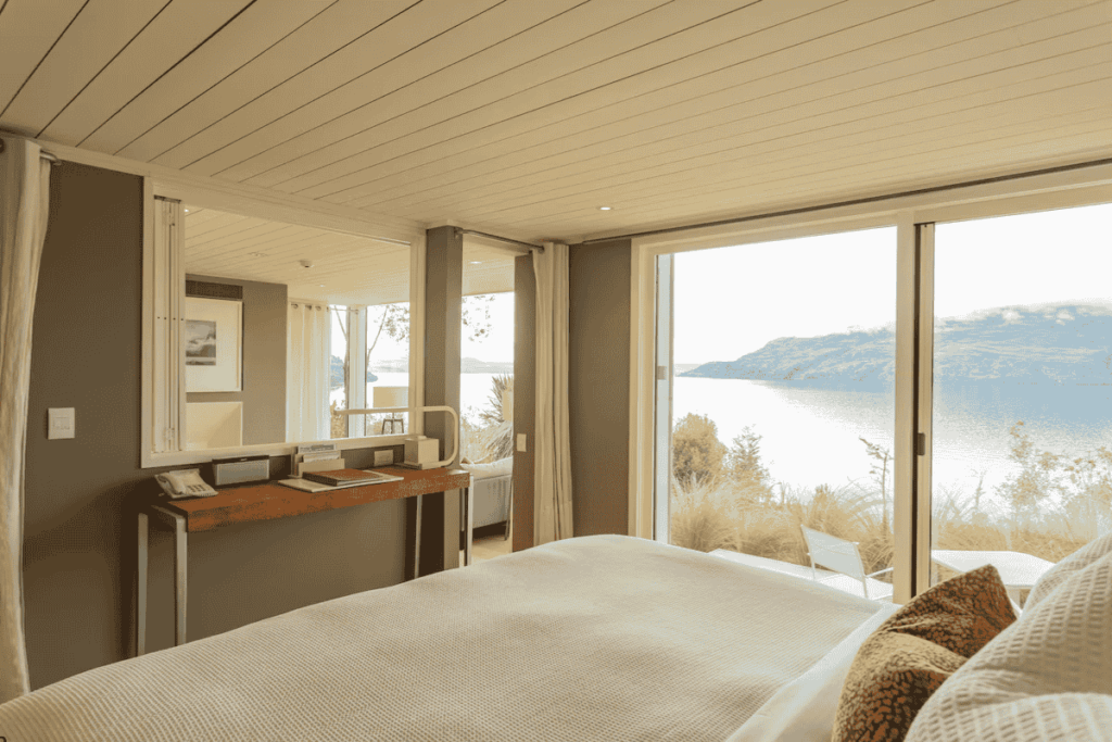 Overlooking Lake Wakatipu, Matakauri Lodge combines dramatic alpine scenery with intimate luxury. Private terraces, fine dining and easy access to Queenstown experiences make it perfect for romantic escapes closer to home.