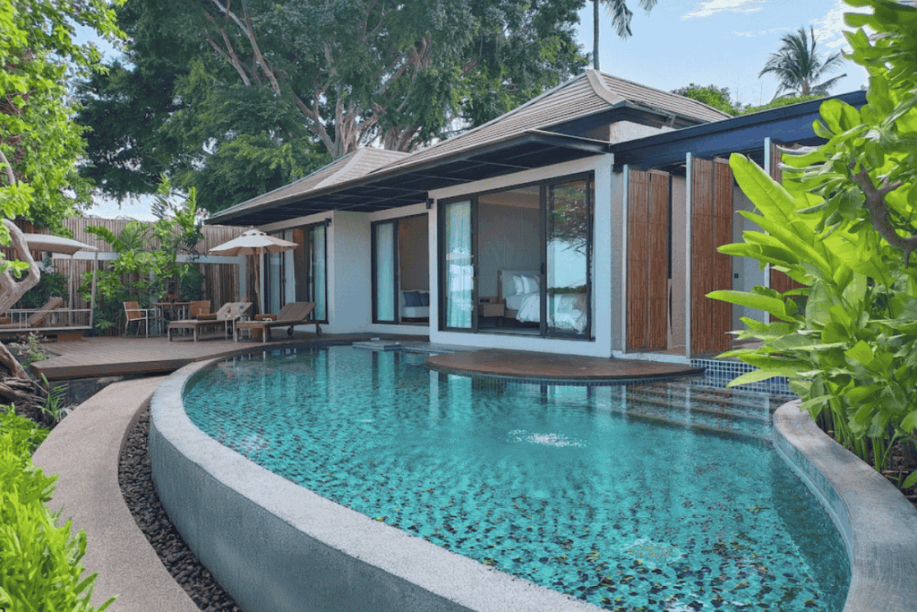 Set along Chaweng Beach, Sareeraya Villas & Suites blends Thai hospitality with beachfront serenity. Guests enjoy suites with private jacuzzis or pool access, a soothing spa with traditional therapies, and sunrise yoga with ocean views. Tropical gardens, calm waters and warm island rhythm make this ideal for guests seeking slow-paced days, spa rituals and a gentle connection to nature.